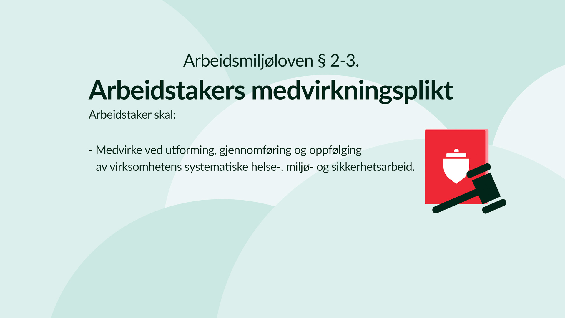 Vi dekker temaer som medvirkningsplikt, risikovurdering, avvikshåndtering og bruk av verneutstyr.